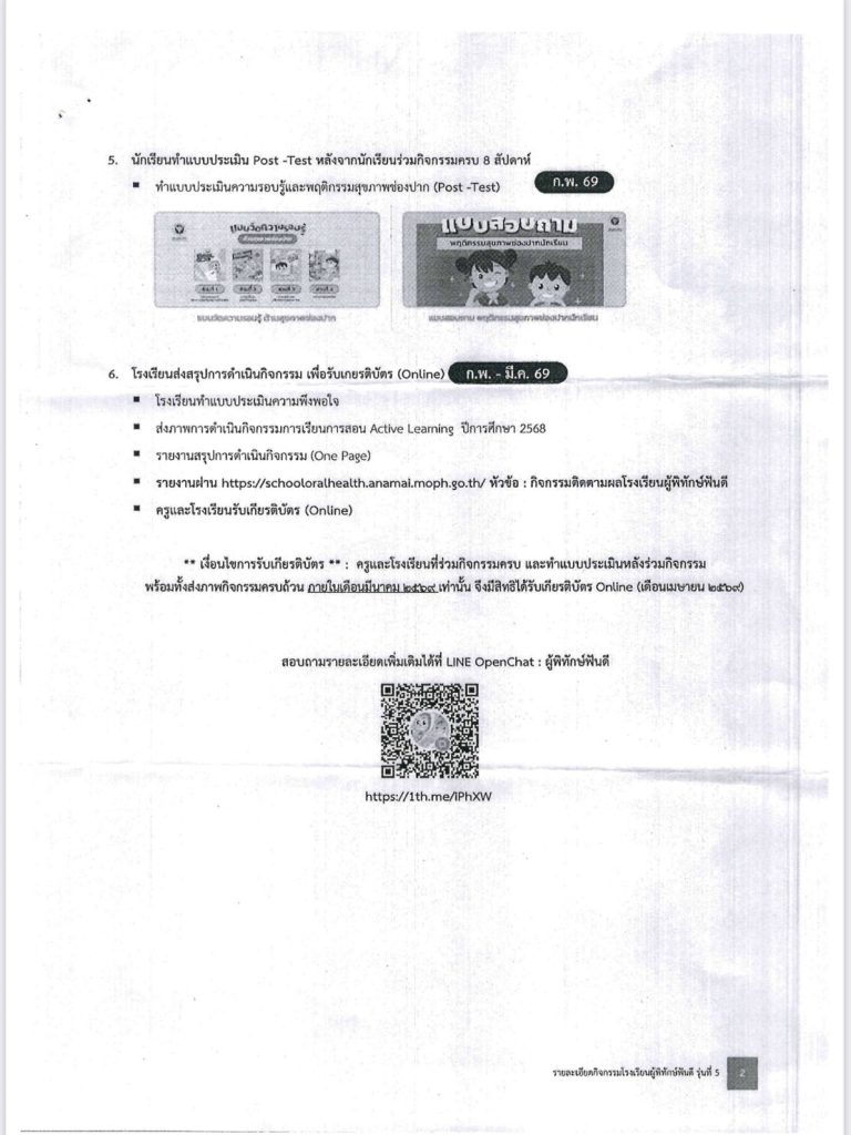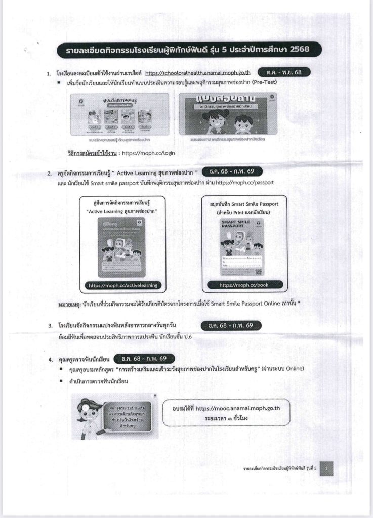 กิจกรรมโรงเรียนผู้พิทักษ์ฟันดี รุ่นที่ 5 Posted on 16 ตุลาคม 2025 by กรรณิกา พันธ์คลอง คู่มือการร่วมกิจกรรมโรงเรียนผู้พิทักษ์ฟันดี-รุ่นที่-1ดาวน์โหลด