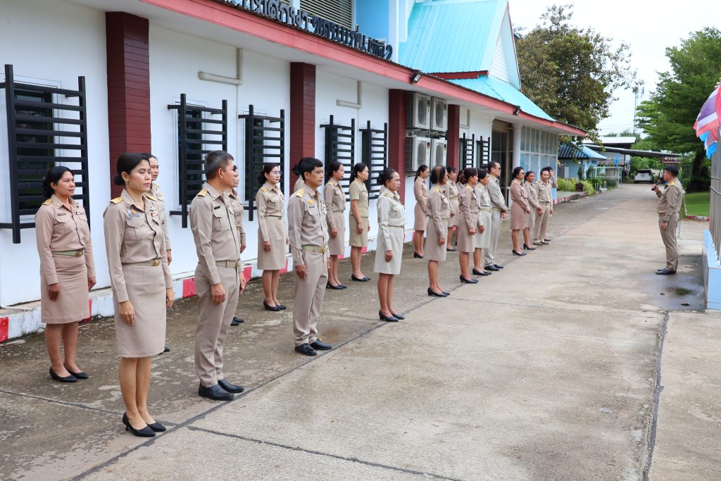 วันนี้ (29 กันยายน 2568) เวลา 08.00 น. ที่บริเวณหน้าเสาธง สพป.ขอนแก่น เขต 2 / นายอภิชัย เสนาโยธี ผู้อำนวยการสำนักงานเขตพื้นที่การศึกษาประถมศึกษาขอนแก่น เขต 2 (ผอ.สพป.ขอนแก่น เขต 2) พร้อมด้วย นายเชาวรินทร์ แก้วพรม รอง ผอ.สพป.ขอนแก่น เขต 2 นำข้าราชการในสังกัดฯ จัดกิจกรรมเคารพธงชาติและร้องเพลงชาติไทย เนื่องในวันครบรอบ 108 ปี วันพระราชทานธงชาติไทย ประจำปี 2568 ซึ่งปีนี้ตรงกับวันอาทิตย์ที่ 28 กันยายน 2568 สำนักงานปลัดสำนักนายกรัฐมนตรี จึงกำหนดจัดกิจกรรมสัปดาห์ “ธงไตรรงค์ ธำรงไทย” เพื่อน้อมรำลึกในพระมหากรุณาธิคุณพระบาทสมเด็จพระมงกุฎเกล้าเจ้าอยู่หัวที่ทรงพระราชทานธงไตรรงค์เป็นธงชาติไทย และเป็นการเผยแพร่องค์ความรู้เรื่องธงชาติไทย รวมถึงเป็นการสร้างจิตสำนึกความรักชาติ และความสามัคคีของคนในชาติ