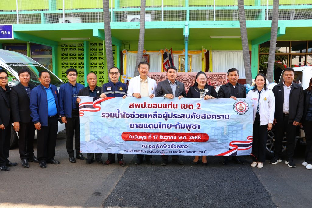 (17 ธันวาคม 2568) นายอภิชัย เสนาโยธี ผู้อำนวยการสำนักงานเขตพื้นที่การศึกษาประถมศึกษาขอนแก่น เขต 2 (ผอ.สพป.ขอนแก่น เขต 2) พร้อมด้วย นายทินกร ชาทอง นายโอวาท อดทน นายเชาวรินทร์ แก้วพรม รอง ผอ.สพป.ขอนแก่น เขต 2 บุคลากร สพป.ขอนแก่น เขต 2 พร้อมด้วยคณะประธานอำเภอ เข้าศึกษาดูงานพร้อมร่วมมอบสิ่งของช่วยเหลือผู้ประสบภัยสงครามไทย-กัมพูชา โดยมี ดร.กัญจนา สัตตรัตนำพร ผอ.สพป.บุรีรัมย์ เขต 1 พร้อมด้วย รอง ผอ.สพป.ขอนแก่น เขต 2 และบุคลากร สพป.บุรีรัมย์ เขต 1 ร่วมให้การต้อนรับ ณ หอประชุมพิมานพรหม สพป.บุรีรัมย์ เขต 1