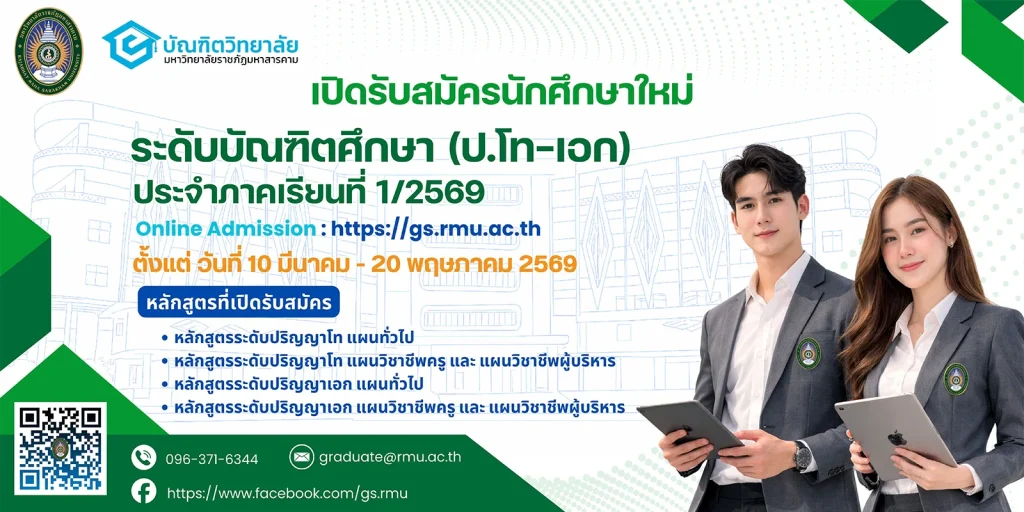 มหาวิทยาลัยราชภัฎมหาสารคาม เปิดรับสมัครนักศึกษาระดับบัณฑิตศึกษา ดูรายละเอียดเพิ่มเติมที่ลิ้งก์
