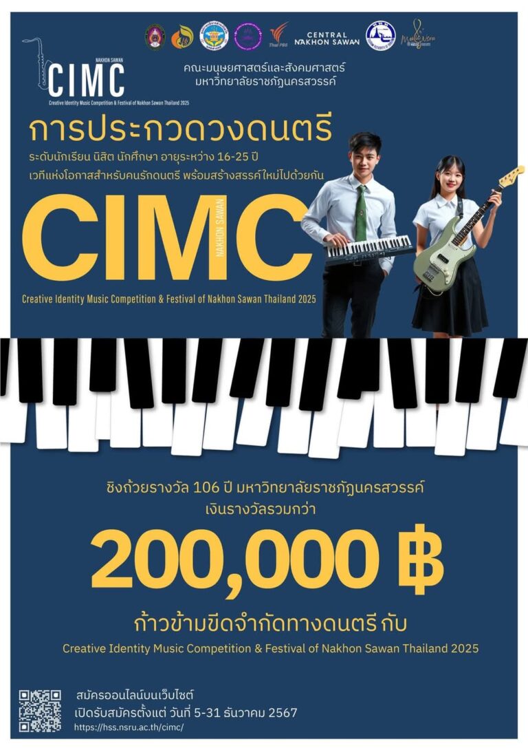 ข่าวประชาสัมพันธ์ภายนอก ขอเชิญผู้ที่สนใจเข้าร่วมกิจกรรมการประกวด CIMC วงดนตรีเยาวชนชิงแชมป์ประเทศไทย : Creative Identity Music Competition & Festival Of Nakhon Sawan Thailand 202529 มกราคม 2568