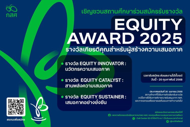 ข่าวประชาสัมพันธ์ภายนอก เชิญชวนสถานศึกษาร่วมสมัครรับรางวัลเกียรติคุณสำหรับผู้สร้างความเสมอภาค EQUITY AWARD 202529 มกราคม 2568