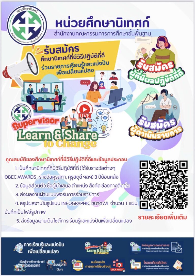 ข่าวประชาสัมพันธ์ภายนอก ประชาสัมพันธ์รับสมัครศึกษานิเทศก์ที่มีวิธีปฏิบัติที่ดีร่วมรายการเรียนรู้และแบ่งปันเพื่อเปลี่ยนแปลง 29 มกราคม 2568