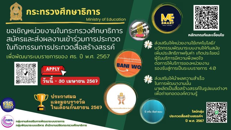 KK2 NEWS ขอเชิญร่วมส่งผลงานประกวดสื่อสร้างสรรค์เพื่อการพัฒนาระบบราชการของกระทรวงศึกษาธิการ ประจำปีงบประมาณ พ.ศ. 256728 มีนาคม 256712 เมษายน 2024