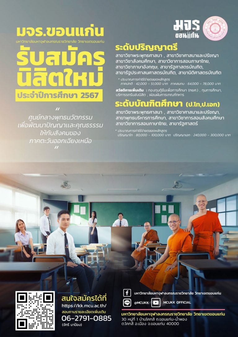KK2 NEWS มหาวิทยาลัยมหาจุฬาลงกรณราชวิทยาลัย วิทยาเขตขอนแก่นเปิดรับสมัครเข้าศึกษาต่อ28 มีนาคม 256712 เมษายน 2024