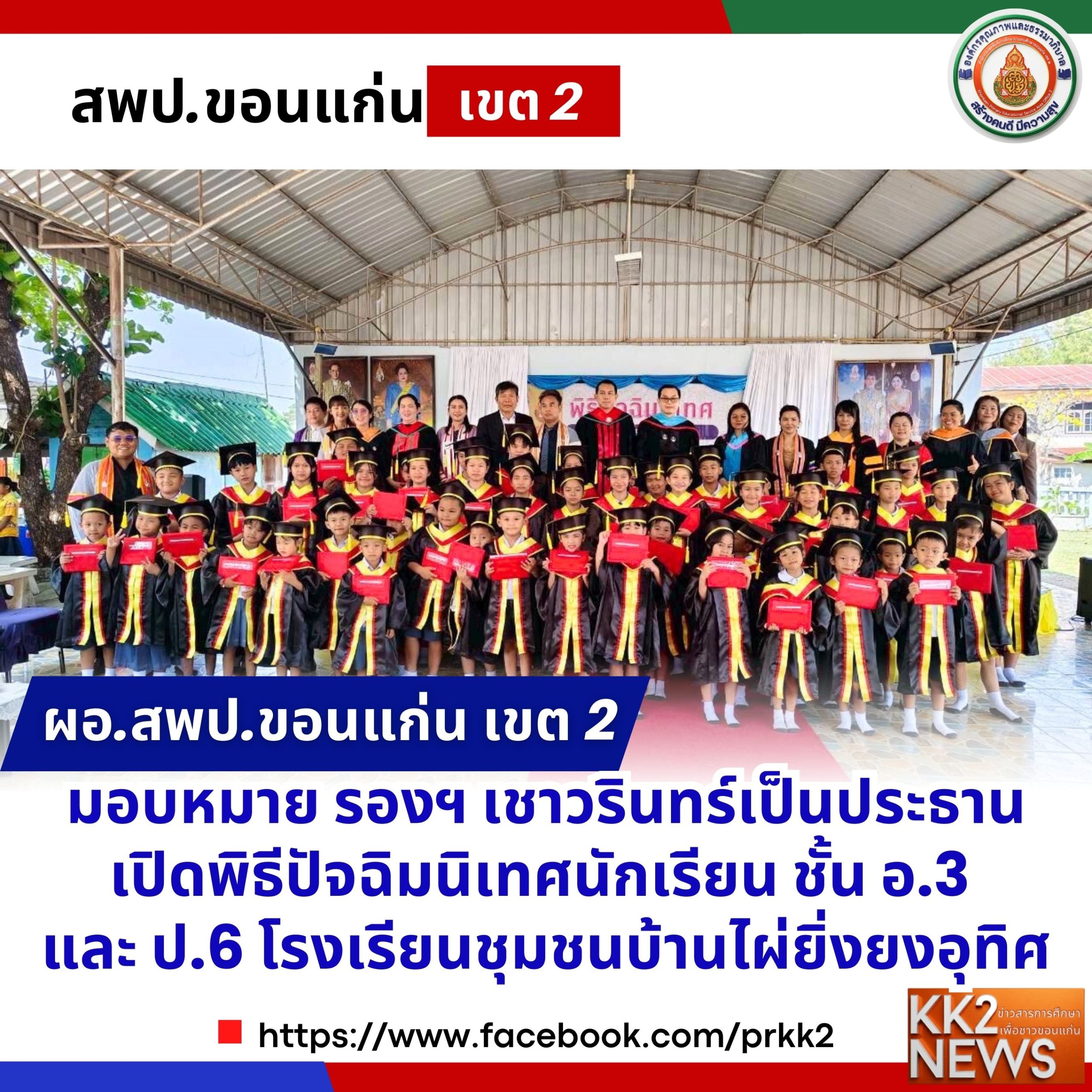 ผอ.สพป.ขอนแก่น เขต 2 มอบหมาย รองฯ เชาวรินทร์เป็นประธานเปิดพิธีปัจฉิมนิเทศนักเรียน ชั้น อ.3 และ ป.6 โรงเรียนชุมชนบ้านไผ่ยิ่งยงอุทิศ